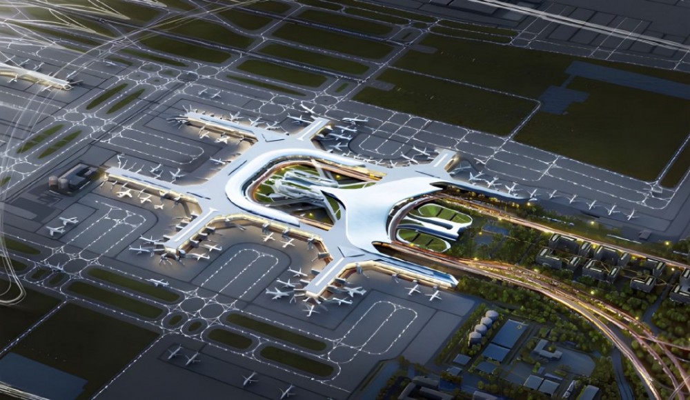 交通中心位于T1航站樓東側(cè),總面積約80萬平方米,自東向西。自上而下將機(jī)場航站樓、磁浮、高鐵、地鐵、長途車站、公交站、出租車上客點及社會停車庫等交通設(shè)施集約布局于一體。工程地下室抗拔樁采用機(jī)械連接竹節(jié)樁7萬米。